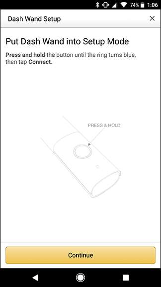 सेटअप मोड में प्रवेश करने के लिए डैश वैंड के किनारे पर राउंड बटन को दबाकर रखें। छड़ी को खुद को कॉन्फ़िगर करने में कुछ समय लगेगा।