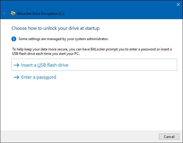 यदि आप किसी कंप्यूटर पर अपने सिस्टम ड्राइव को एन्क्रिप्ट कर रहे हैं नहीं है एक टीपीएम है, आप ड्राइव को पासवर्ड या यूएसबी ड्राइव से अनलॉक कर सकते हैं जो एक कुंजी के रूप में कार्य करता है। अपनी अनलॉक विधि का चयन करें और उस पद्धति के निर्देशों का पालन करें (अपने यूएसबी ड्राइव में एक पासवर्ड या प्लग दर्ज करें)।