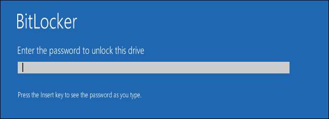 यदि आपका सिस्टम ड्राइव एन्क्रिप्ट किया गया है, तो इसे अनलॉक करना आपके द्वारा चुनी गई विधि पर निर्भर करता है (और क्या आपके पीसी में टीपीएम है)। यदि आपके पास एक TPM है और स्वचालित रूप से ड्राइव को अनलॉक करने के लिए चुना गया है, तो आपने कुछ भी अलग नहीं देखा है - आप हमेशा की तरह Windows में सीधे बूट करेंगे। यदि आपने कोई अन्य अनलॉक विधि चुनी है, तो Windows आपको ड्राइव को अनलॉक करने के लिए संकेत देता है (अपना पासवर्ड टाइप करके, अपने यूएसबी ड्राइव को कनेक्ट करके या जो भी हो)।
