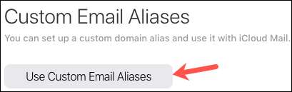 एक बार आपका डोमेन iCloud मेल के साथ सेट हो जाने के बाद, यदि आप चाहें तो आप एक नया ईमेल पता बना सकते हैं। ICloud पर कस्टम ईमेल उपनाम अनुभाग पर लौटें और "कस्टम ईमेल उपनाम" (या "प्रबंधन") पर क्लिक करें।