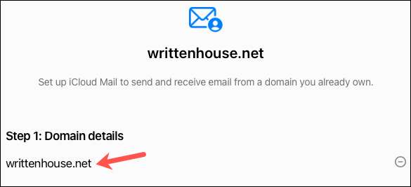 अगली स्क्रीन पर, चरण 1 के लिए शीर्ष पर डोमेन नाम की पुष्टि करें।