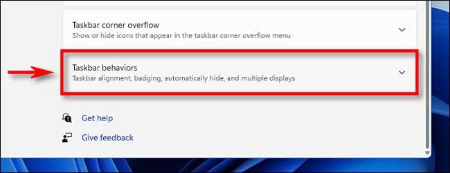 टास्कबार सेटिंग्स में, "टास्कबार व्यवहार" का चयन करें।