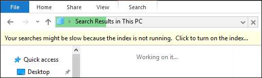 और बस। Windows खोज अब अक्षम हो गई है, एक तथ्य यह है कि जब आप खोज करते हैं तो Windows आपको (और ठीक करने की पेशकश) के बारे में याद दिलाता है।
