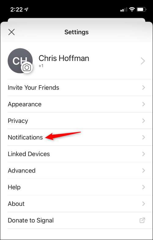 सिग्नल सेटिंग्स मेनू स्क्रीन पर "अधिसूचनाएं" टैप करें।
