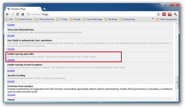 नीचे स्क्रॉल करें और "टैब को सिंक्रनाइज़ करना सक्षम करें" नामक एक ध्वज की तलाश करें और इसे सक्षम करें।