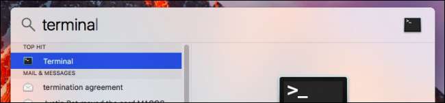 डमी फ़ाइल बनाने के लिए, टर्मिनल खोलें। यदि आपके पास टर्मिनल आपके डॉक पर पिन नहीं किया गया है, तो आप इसे एप्लिकेशन> यूटिलिटीज में या कीबोर्ड शॉर्टकट कमांड + स्पेस का उपयोग करके स्पॉटलाइट खोज का संचालन करके पा सकते हैं।