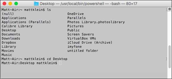 जब आप टर्मिनल खोलते हैं, तो यह आपके होम डायरेक्टरी में शुरू हो जाता है। जब आप डमी फाइलें बनाते हैं, तो यह एक अच्छा विचार है कि पहले अपनी निर्देशिका को आसानी से सुलभ स्थान पर बदलें, जैसे कि डेस्कटॉप, इसलिए वे स्वतः ही वहां बन जाते हैं।