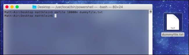 अब जब आप अपने डेस्कटॉप निर्देशिका में हैं, तो आप उसी टर्मिनल विंडो से डमी फाइल बना सकते हैं। आपका आदेश इस तरह दिखेगा: