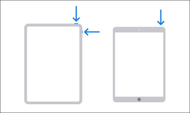 - होम बटन के बिना iPad पर: इसके साथ ही शीर्ष बटन और मात्रा ऊपर या नीचे बटन स्क्रीन पर पावर बंद स्लाइडर प्रकट होता है जब तक दबाएँ। [1 9]