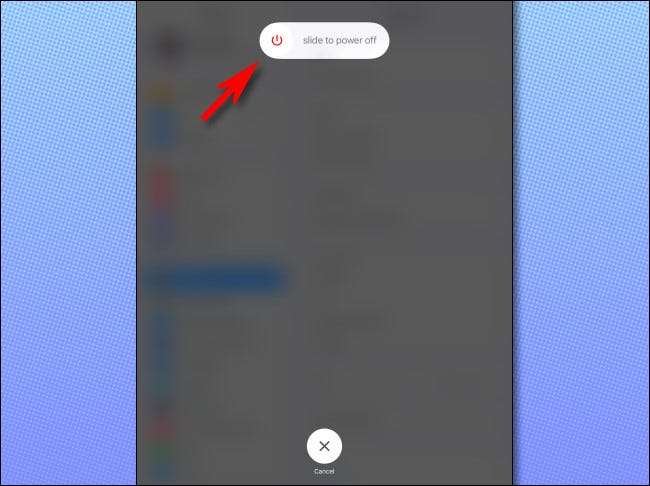 जब आप स्क्रीन पर स्लाइडर "पावर बंद करने के लिए स्लाइड" देखते हैं, सफेद सर्कल पर अपनी उंगली जगह है और सही करने के लिए अपनी उंगली स्वाइप करें।