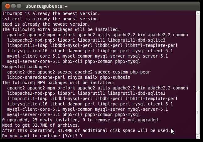 यह अंत में कैरेट के बिना काम नहीं करेगा। आपके द्वारा दर्ज किए जाने के बाद, आप देखेंगे कि यह सभी आवश्यक पैकेजों का स्वत: चयन करता है और आपसे डेटा को डाउनलोड करने के लिए "बड़ी" राशि की पुष्टि करने के लिए कहेगा।