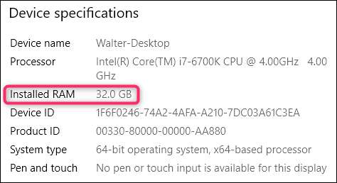 जब आप RAM स्थापित करना समाप्त कर लेते हैं, तो आप यह सुनिश्चित करना चाहते हैं कि यह सही ढंग से काम कर रहा है। आपके पीसी के आधार पर, BIOS प्रारंभिक बूट अप स्क्रीन पर मेमोरी की मात्रा प्रदर्शित कर सकता है। यदि आप यह नहीं देखते हैं, तो आप अपने पीसी के BIOS में लोड कर सकते हैं या अपने ऑपरेटिंग सिस्टम को चालू कर सकते हैं और फिर वहां मान्यता प्राप्त रैम की मात्रा की जांच कर सकते हैं। विंडोज 10 में, आप सेटिंग्स> सिस्टम> अबाउट हेड कर सकते हैं।