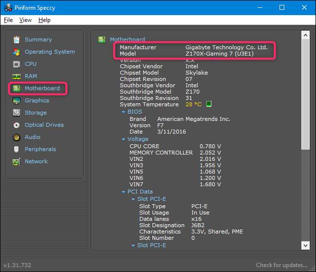 आपको विवरण के लिए अपने मदरबोर्ड या पीसी के लिए प्रलेखन की जांच करने की आवश्यकता होगी। यदि आप अनिश्चित हैं कि आपके पास कौन सा मदरबोर्ड है, तो आप फिर से Speccy की ओर रुख कर सकते हैं, जहाँ Motherboard श्रेणी आपको आवश्यक जानकारी दिखाती है।