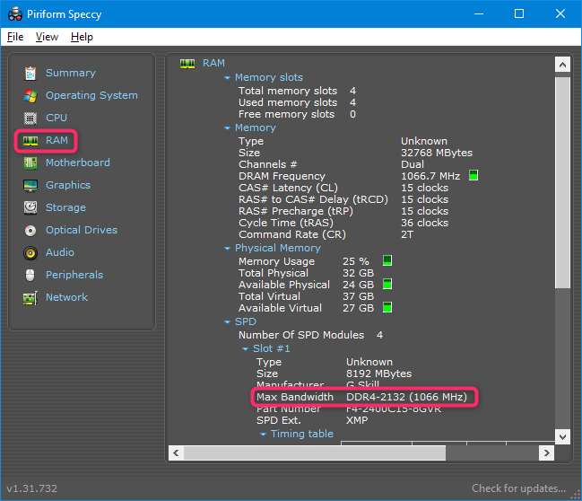 उसके लिए, आप अपना मामला खोल सकते हैं और मॉड्यूल और स्लॉट की संख्या की गिनती कर सकते हैं, या आप किसी अन्य टूल की ओर रुख कर सकते हैं। वहाँ कई हार्डवेयर सूचना उपकरण हैं, लेकिन हमारा पसंदीदा मुफ्त संस्करण है Speccy (CCleaner के निर्माता पिरिफॉर्म द्वारा बनाया गया)।