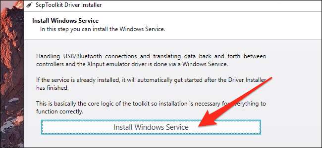 उसके बाद, ScpToolkit नियंत्रक के साथ संचार को संभालने के लिए एक Windows सेवा स्थापित करना चाहेगा।