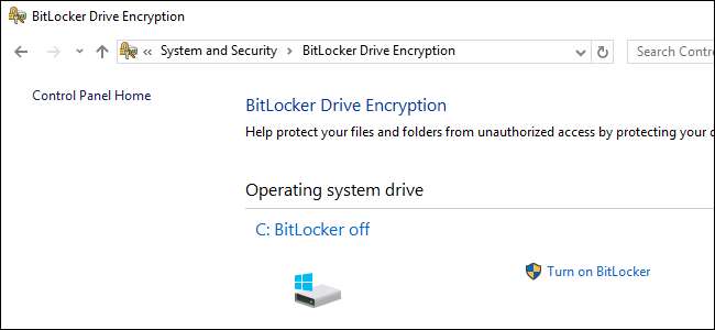 अब आप सामान्य रूप से BitLocker को सक्षम, कॉन्फ़िगर और उपयोग कर सकते हैं। कंट्रोल पैनल> सिस्टम और सिक्योरिटी> BitLocker Drive एन्क्रिप्शन पर जाएं और ड्राइव के लिए इसे सक्षम करने के लिए "BitLocker को चालू करें" पर क्लिक करें।
