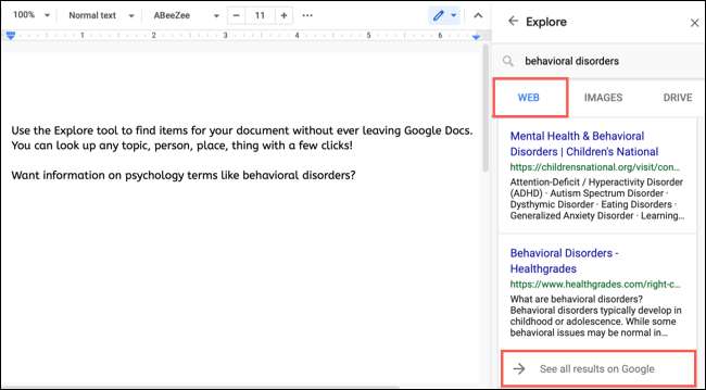 Google डॉक्स में एक्सप्लोर फ़ीचर आपके विषय (सामग्री और छवियों सहित) का शोध करने के लिए एकदम सही है, और यहां तक कि Google ड्राइव से अपनी सहेजी गई सामग्री को संदर्भित करने के लिए भी।