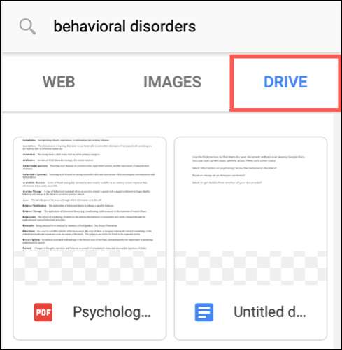 शायद आपके पास एक दस्तावेज़, एक छवि, या कोई अन्य आइटम है [10 9] Google ड्राइव में सहेजा गया आप संदर्भित करना चाहते हैं। साइडबार के शीर्ष पर "ड्राइव" पर क्लिक करें, और आप उन आइटमों को देखेंगे जिन्हें आपने अपने खोज शब्द से संबंधित सहेजा है।