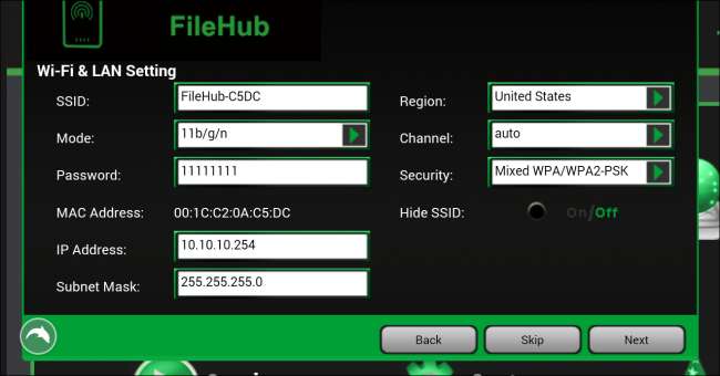 पहले प्रशासनिक लॉगिन पर आपको एक कॉन्फ़िगरेशन विज़ार्ड के साथ जोड़ा जाएगा, जो डिवाइस को सेट करने के माध्यम से आपके पास जाएगा। पहला चरण डिवाइस को मौजूदा वाई-फाई नेटवर्क से जोड़ने पर केंद्रित है ताकि फाइलहब से जुड़े उपकरणों में इंटरनेट का उपयोग हो; यदि आपके पास उपलब्ध वाई-फाई नेटवर्क नहीं है या आप फ़ाइलहब को नेटवर्क से जोड़ना नहीं चाहते हैं, तो आप इस चरण को छोड़ सकते हैं।