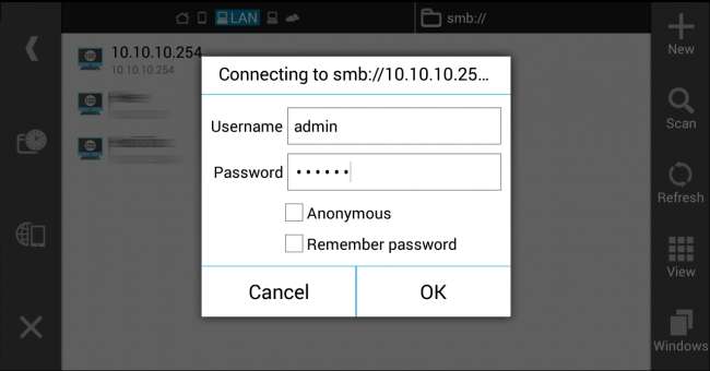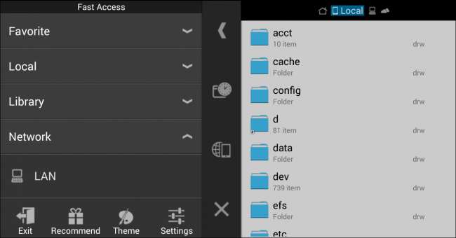 नेटवर्क ड्राइव को नेविगेट करने में सक्षम फ़ाइल ब्राउज़र का उपयोग करके किसी अन्य सिस्टम (जैसे एंड्रॉइड फोन) से डिवाइस से कनेक्ट करना कहीं अधिक व्यावहारिक है। हमारे उद्देश्यों के लिए Android फ़ाइल एक्सप्लोरर ऐप ES फ़ाइल एक्सप्लोरर एक सही फिट है। आप आसानी से ऐप को आग लगा सकते हैं और LAN फ़ाइल ब्राउज़र का उपयोग करके फ़ाइलहब पर नेविगेट कर सकते हैं। ES फ़ाइल एक्सप्लोरर में थोड़ा विश्व आइकन पर टैप करें और फिर LAN का चयन करें।
