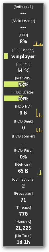 जब M00 सिस्टम मॉनिटर पहली बार शुरू होता है, तो यह उन फ़ील्ड के डिफ़ॉल्ट सेट के साथ खुलेगा, जिनकी निगरानी की जा रही है। यहां से आप प्रदर्शित फ़ील्ड, लुक (खाल), लेआउट शैली (यानी क्षैतिज, ऊर्ध्वाधर, या बॉक्स प्रवाह), और कई अन्य चीजों को अनुकूलित कर सकते हैं ( बहुत अच्छा! ).