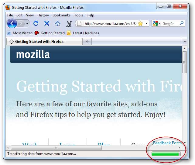 एक बार जब आप एक्सटेंशन स्थापित कर लेते हैं, तो "प्रगति बार" किसी भी टैब पर प्रदर्शित होगा जो वर्तमान में लोड हो रहा है यदि आप चाहें तो "स्टेटस बार" को पूरी तरह से छिपाने के लिए आपको स्वतंत्र छोड़ सकते हैं।