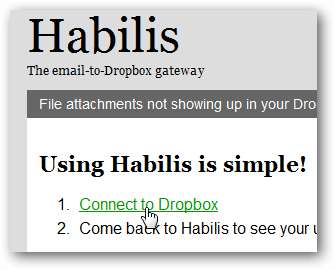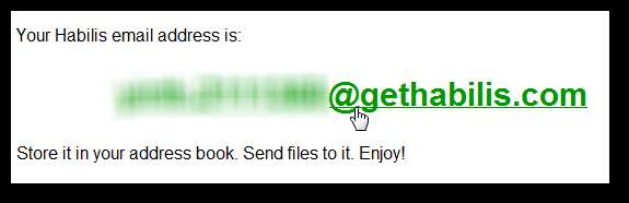 अब, Habilis की साइट पर वापस जाएं, और आपको Habilis के लिए एक अनूठा ईमेल पता मिलेगा। आपके द्वारा इस पते पर ईमेल की गई कोई भी फ़ाइल a में जोड़ी जाएगी / हैबिलिस से आपके ड्रॉपबॉक्स में फ़ोल्डर, और फिर आप इसे प्रिंट फ़ोल्डर में बाद में किसी अन्य एप्लिकेशन, आपके ब्राउज़र या पूर्ण कंप्यूटर से स्थानांतरित कर सकते हैं।