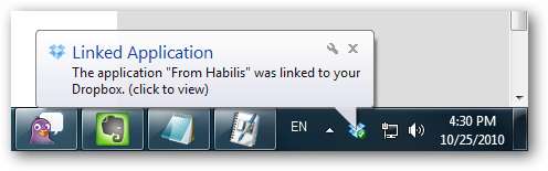 बाद में, आपको ड्रॉपबॉक्स से एक सूचना देखनी चाहिए कि हाबिलिस आपके खाते से जुड़ा हुआ है।