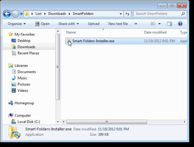 नोट: स्मार्ट फ़ोल्डर स्थापित करना Windows एक्सप्लोरर को पुनरारंभ करता है, इसलिए आपके पास खुली हुई कोई भी एक्सप्लोरर विंडो अपने आप बंद हो जाएगी।