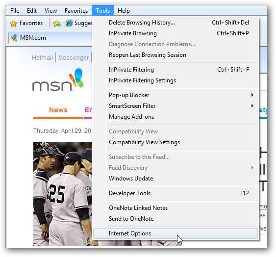 Internet Explorer सेटिंग्स को रीसेट करने के लिए, टूल्स इंटरनेट विकल्प पर क्लिक करें। जब आप सेटिंग्स को रीसेट करते हैं, तो आप अपने होमपेज, खोज प्रदाता, पासवर्ड ... आदि जैसी व्यक्तिगत सेटिंग्स नहीं खोते हैं।
