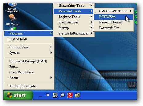 एक बार जब आप अंतिम बूट सीडी शुरू कर देते हैं, तो आप Start \ Programs \ Password टूल के माध्यम से नेविगेट करना चाहते हैं और मेनू में NTPWEdit ढूंढ सकते हैं।