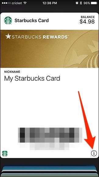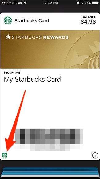 यह लगभग छिपा हुआ है, लेकिन जब आप एक पास खोलते हैं, तो एक छोटा ऐप आइकन नीचे-बाएँ कोने में दिखाई देता है। पास से जुड़े ऐप को खोलने के लिए उस आइकन पर टैप करें। इस मामले में, यह स्टारबक्स ऐप है।