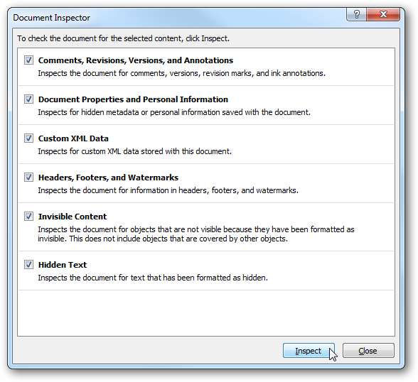 दस्तावेज़ निरीक्षक में, तय करें कि आप किस प्रकार की सामग्री का विश्लेषण करना चाहते हैं।