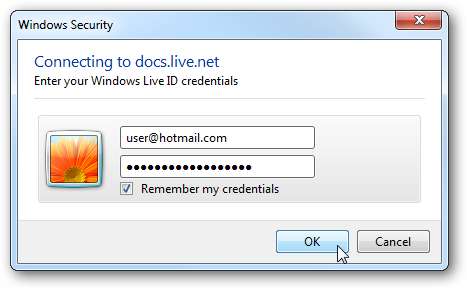 जब आप इसे अपने स्काईड्राइव में साझा करते हैं तो आपको अपने लाइव खाते में प्रवेश करने के लिए प्रेरित किया जाता है।