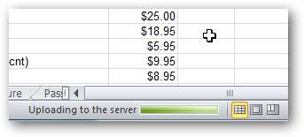 जबकि दस्तावेज़ सहेज रहा है आप दस्तावेज़ के निचले भाग में एक प्रगति पट्टी देखेंगे, यह दिखा रहा है कि यह सर्वर पर अपलोड हो रहा है।