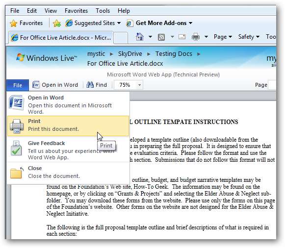 वेब से अपलोड किए गए दस्तावेज़ों को एक्सेस और संपादित करने के लिए, आपको अपने विंडोज लाइव खाते में लॉग इन करना होगा और स्काईड्राइव में जाना होगा और उस दस्तावेज़ का चयन करना होगा जिस पर आप काम करना चाहते हैं।