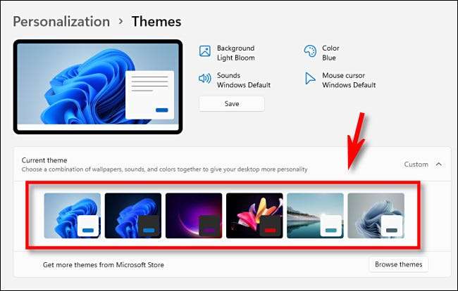 कब थीम चुनना (सेटिंग्स और जीटी में; वैयक्तिकरण और जीटी; थीम्स), आप विंडोज लाइट या विंडोज डार्क थीम्स का चयन करके प्रकाश और अंधेरे मोड के बीच भी स्विच कर सकते हैं, और प्रसिद्ध नीली घुड़सवार विंडोज 11 पृष्ठभूमि तदनुसार बदल जाएगी। यदि आप विंडोज 11 के अंतर्निहित विषयों से थक जाते हैं, तो आप माइक्रोसॉफ्ट स्टोर से नए मुफ्त या प्रीमियम थीम भी इंस्टॉल कर सकते हैं।