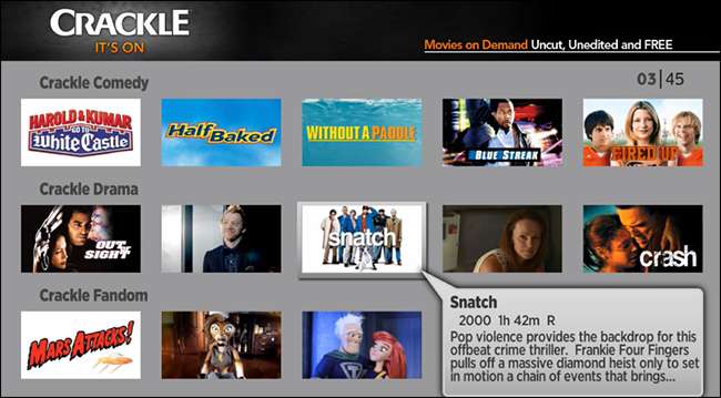 crackle स्ट्रीमिंग सेवा में सोनी का प्रयास है, और इसमें टीवी शो और फिल्मों की सम्मानजनक सूची है। आपको नवीनतम और सबसे बड़ा नहीं मिलेगा, लेकिन पेश किए गए शो में जुगनू और सीनफील्ड शामिल हैं, और फिल्मों में क्लासिक्स जैसे अपोलो 13 और अनन्त सनशाइन ऑफ़ द स्पॉटलेस माइंड शामिल हैं। कुछ वेब-विशिष्ट परियोजनाएं भी हैं, जिनमें जेरी सीनफेल्ड के कॉमेडियन इन कार्स गेटिंग कॉफ़ी, की जाँच करें।