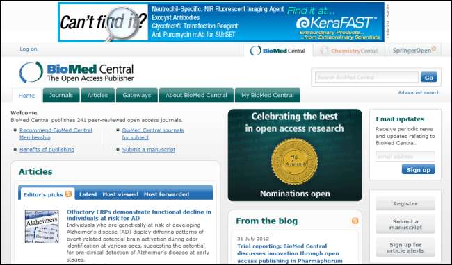 बायोमेड सेंट्रल 241 पीयर-रिव्यू, ओपन एक्सेस जर्नल्स का एक विज्ञान, प्रौद्योगिकी और चिकित्सा (एसटीएम) प्रकाशक है। बायोमेड सेंट्रल द्वारा प्रकाशित मूल शोध लेख प्रकाशन के तुरंत बाद स्वतंत्र रूप से और स्थायी रूप से जनता के लिए ऑनलाइन सुलभ हैं।