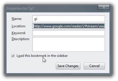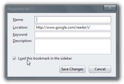 सुनिश्चित करें कि आप "साइडबार में इस बुकमार्क को लोड करें" के लिए बॉक्स की जांच करें, और आप कर रहे हैं।