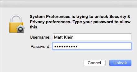 अधिकांश परिवर्तन करने के लिए, आपको पहले लॉक आइकन पर क्लिक करना होगा और अपना पासवर्ड दर्ज करना होगा।