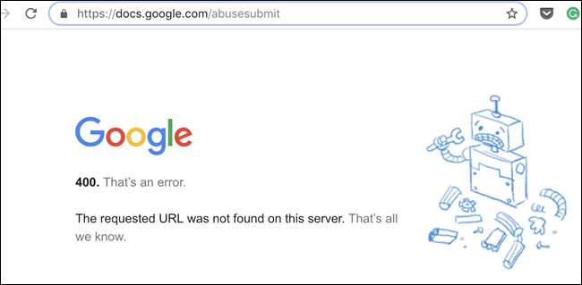 सभी ने कहा, Google ड्राइव कर देता है स्पैम रिपोर्टिंग की पेशकश करें - लेकिन जब हमने फीचर का परीक्षण किया, तो उसने आधे समय के लिए 404 पेज का निर्देश दिया। जब यह काम करता था, तब भी दस्तावेज़ को ड्राइव से हटाया या अवरुद्ध नहीं किया गया था। गिनती के लिए Google के लिए एक अच्छी नज़र नहीं है।