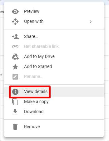 तो, आपको कैसे पता चलेगा कि आपके पास किसी विशिष्ट शेयर के लिए क्या विशेषाधिकार हैं? सबसे पहले, Google डिस्क में फ़ाइल पर राइट-क्लिक करें और फिर "विवरण देखें" चुनें।