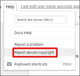 ऐसा करने के लिए, प्रश्न में दस्तावेज़ खोलें, और फिर मदद पर क्लिक करें। वहां से, "दुरुपयोग / रिपोर्ट की रिपोर्ट करें" चुनें।