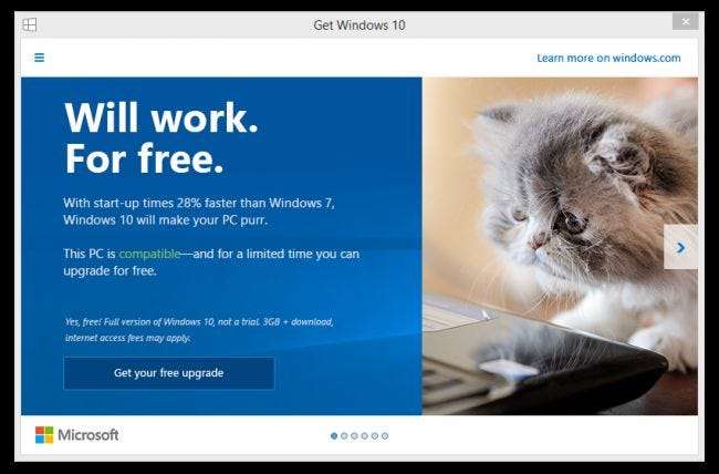 विंडोज 10, या "GWX" प्राप्त करें, समय के साथ पुष्य बन जाता है