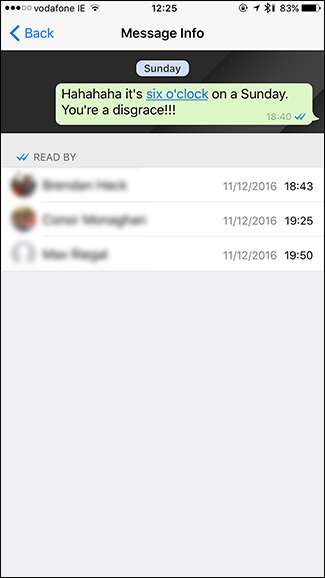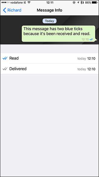 आप देखेंगे कि आपके संदेश को किस समय वितरित किया गया और, यदि व्यक्ति ने प्राप्तियों को पढ़ा है, तो वह किस समय पढ़ा गया था।