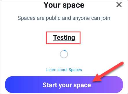फिर आप अंतरिक्ष को एक नाम देंगे और "अपनी जगह शुरू करें" टैप करेंगे।