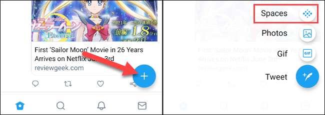 एक स्थान बनाने के लिए, नीचे-दाएं कोने में फ़्लोटिंग "+" बटन टैप करें और "रिक्त स्थान" चुनें। यदि रिक्त स्थान अभी तक आपके लिए उपलब्ध नहीं हैं, तो फ़्लोटिंग बटन केवल ट्वीट्स को लिखने के लिए होगा।