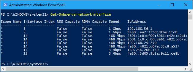 “प्रॉम्प्ट पर और एंटर दबाएं। "RDMA सक्षम" कॉलम के तहत देखें कि क्या वे RDMA का समर्थन करते हैं। एक विशिष्ट डेस्कटॉप पीसी पर, वे लगभग निश्चित रूप से नहीं कर पाएंगे।