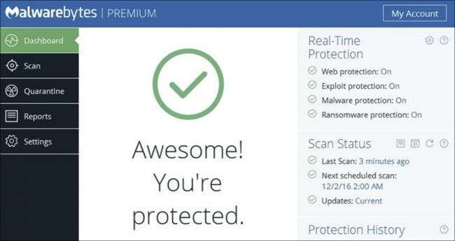 मालवेयरबाइट्स के पूर्ण $ 40 संस्करण में आपको केवल तीन सुविधाएँ मिल सकती हैं, जो हम सुझाते हैं। लेकिन अगर आप एंटी-रैंसमवेयर और हमेशा ऑन-स्कैन मालवेयर स्कैन करने को तैयार हैं, तो मालवेयरबाइट्स और एंटी-एक्सप्लॉइट के मुफ्त संस्करण कुछ भी बेहतर नहीं हैं, और आपको निश्चित रूप से उनका उपयोग करना चाहिए।